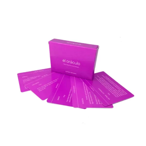 EL ORÁCULO by Pata Liberati & Connie Ansaldi es un complemento de Cartas Salvajes con 50 reflexiones + 50 consignas para aplicar en tu día a día con el propósito de generar foco, consciencia y bienestar. No hay reglas. El orden de las preguntas es aleatorio.
