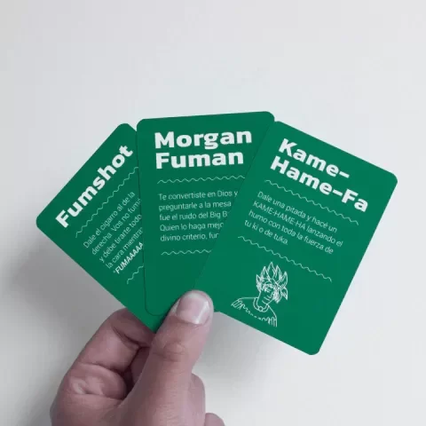 Es muy simple: cada carta tiene una consigna para que fume uno, todos o nadie. Por ejemplo imitar a Shakira, rezarle a San Cogollito o hacer un Kame-Kame-Ha de humo.