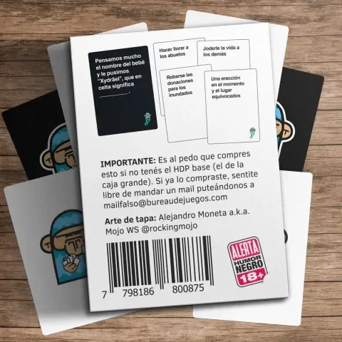 50 cartas nuevas (40 cartas blancas y 10 cartas negras), con el mismo humor negro de siempre, para agregar a la colección de HDP.