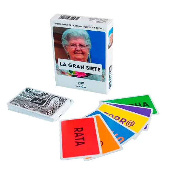 La gran siete incluye 100 cartas. Este juego te puede salvar de una cena aburrida o levantar una juntada familiar que se va a pique, solo tenés que mirar tu carta y gritar ROJO...AMARILLO...MIERDA!