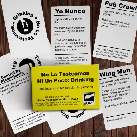 Eventualmente iba a pasar: Una expansión que convierte tu No Lo Testeamos en un Drinking Game. Puede usarse con cualquier tipo de bebida (con y sin alcohol).