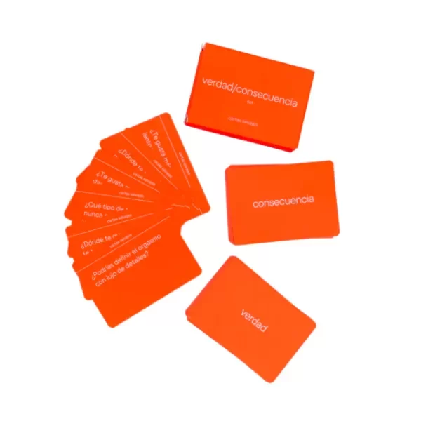 VERDAD o CONSECUENCIA HOT PACK es un complemento de Cartas Salvajes, incluye 50 cartas con 25 preguntas y 25 retos sobre sexo. También se puede usar de forma independiente y, si es así, preparate para una noche demasiado hot. No hay reglas. El orden de las preguntas es aleatorio.
